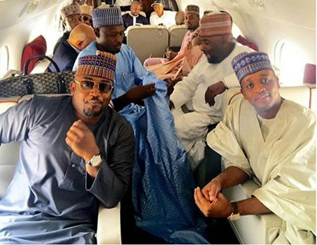 "Dear Nigerian Youth who wants to die for Nigerian politicians especially that youth who will fight everyone when his political hero is criticized, come closer. I have a message for you. Inside this private jet, you will see the billionaire son Ahmed Indimi of billionaire Mohammed Indimi (he is the one in front to the right looking at the camera) who just married Zahra, Buhari's daughter, to his left, also in front, is his brother, Maikanti, who is married to Aisha Dangote and behind them in light blue is Babagana Sherrif, he is the brother of former Borno governor Ali Modu Sheriff and he is married to president Buhari's daughter, Halima, the one who just finished from law school. Take a second look at your destiny as the children of the politicians have already arranged their own destinies. In this photo, you will see people from PDP and APC background from different tribes from different states but they are all united because the elite is all one big family. They do not care about any religious, political, tribal or ethnic difference, the only thing they care about is whatever agenda that will secure their future & guarantee their own prosperity & of their generations unborn. So before you die for your APC or PDP hero, or before you fight the entire community because of any of the artificial divisions created by the intelligent humans to control and subjugate others, rethink your life. Nobody send you o...-ABIYAMO."