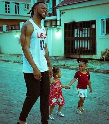 Flavour hanging out and enjoying his time with his two beautiful daughters.